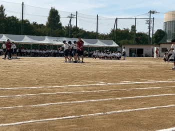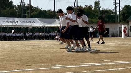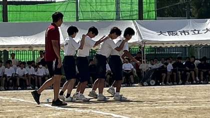 木の板に靴が入るように紐をつけています。タイミングを合わせて、1.2、1.2....