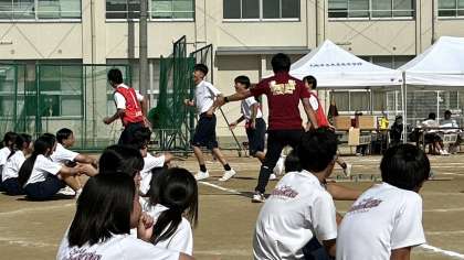 アンカーがゴールしました。練習の時は、結構こけていましたが、今日はこけるチームがほとんどなかったようです。よくがんばりました^_^