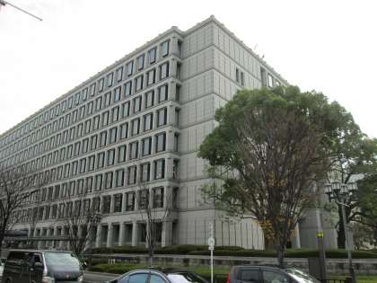 大阪市教育委員会のある大阪市役所。ご承知のとおり、大阪の大動脈である「御堂筋」に面しています。夜になると、イルミネーションが!