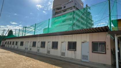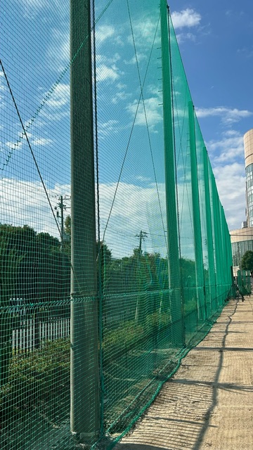 台風等の強風で、破れがひどかった運動場の防球ネットが、このたび新しく張り直されました。