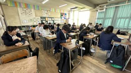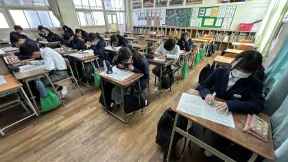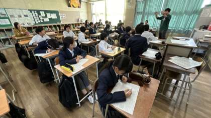 1年生が期末テストに向けて、習熟度別に分かれて学習をしています。