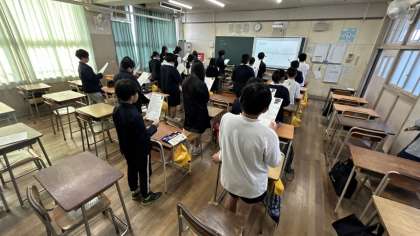 このクラスは、英語でビートルズのハローグッバイを歌いました。