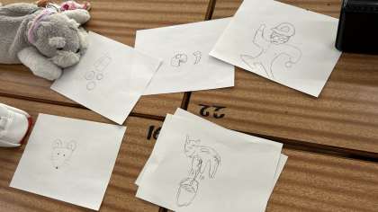 このクラスでは、美術室で何やら絵を描いています。キツネ?マリオ?んー、創造をかき立てられます^_^