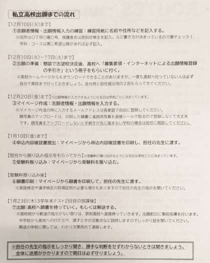 公立受験予定の方は懇談後に4階学習室で登録作業があります。