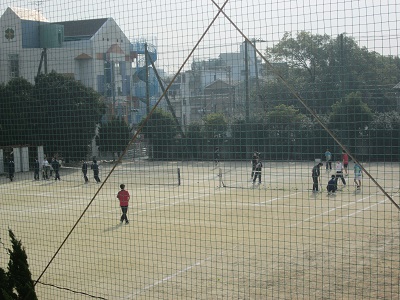 太陽も顔を出し、気温も上昇。半袖で頑張っている生徒もいます。
