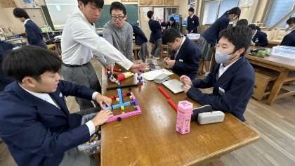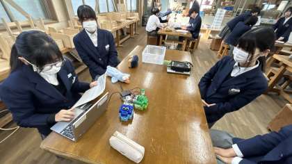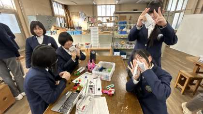 プラスチックのパーツを組み立てて、思い思いのキャラクターをつくります。パソコンで組み立てたプログラムをキャラクターに送信します。