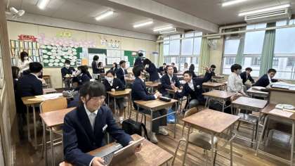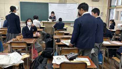 冬休みの課題提出と、私立高校等の志望校確認、健康観察を行いました。