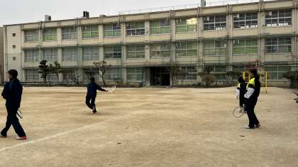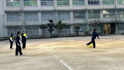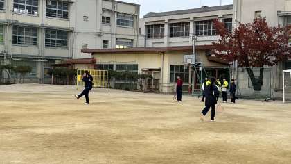 運動場が改装中で使用できないので、北恩加島小学校の運動場を借りています。