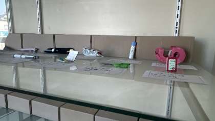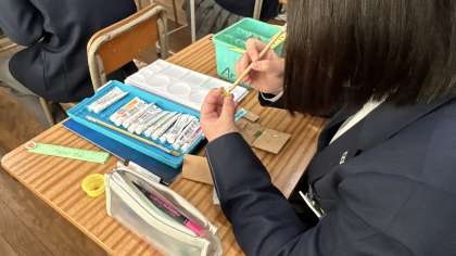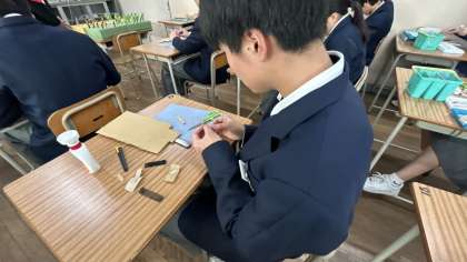 遠くから見ると本物に見えますが、よく見るとやっぱりダンボール。優秀な作品は、美術室前のショーケースに展示されます。黙々と作成していました^_^