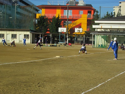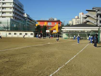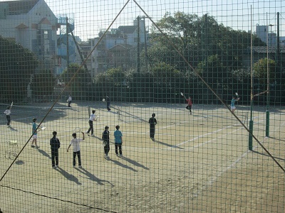 テニスコートでは、硬式テニス部が練習を始めました。半袖で頑張っている生徒もいます。