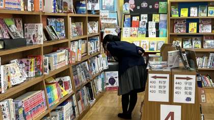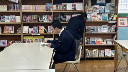 今日は図書館が開いていましたので、中に入ってみました。数名の生徒が本を探していました。