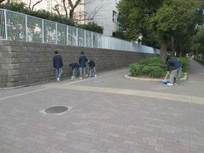 今朝は寒い中、バスケットボール部の諸君が清掃活動をしてくれました。感謝!