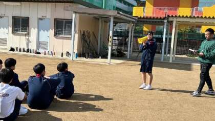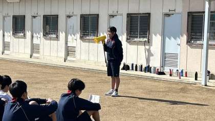 開会式の司会、開会宣言、諸注意については、代表の生徒が前に出て行いました。