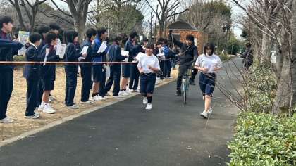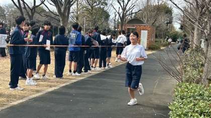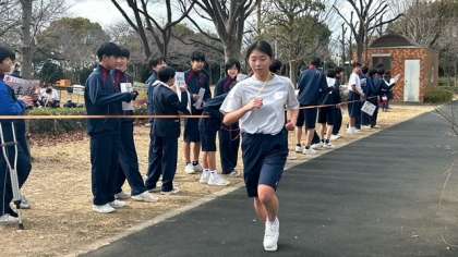 先頭はゴールしましたが、まだまだ頑張っている生徒はいます。男子生徒がさらに応援の声を大きくしています。