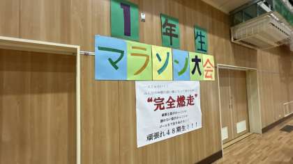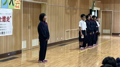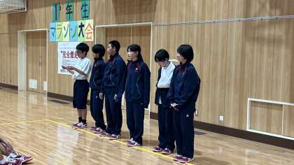 マラソン大会が終わり、学校に戻ってきて体育館で閉会式を行いました。