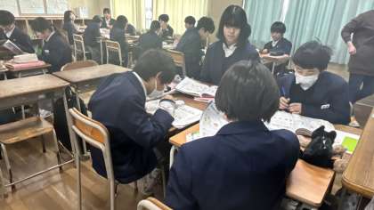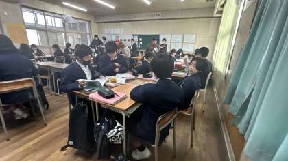 1年1組では、英語の授業が行われていました。グループに分かれ、それぞれが英語で会話をしています。すごいですね^_^