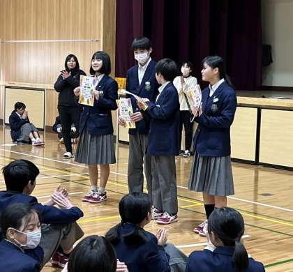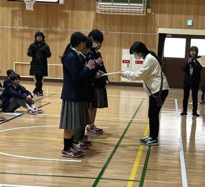マラソン大会では、各生徒が工夫を凝らした応援ボードを作成していました。その中でも優秀なボードを作成した生徒にも表彰がありました。