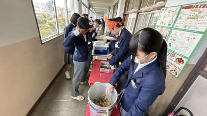 今日の給食は、節分メニューとなっています。今年の節分は2月2日(日曜日)になりました。恵方を向いて、恵方巻を切らずに無言で食べると言う風習もありますが、その起源は定かではないと言うことです。今年の恵方は、西南西でした。豆まきはできたかな?皆さんに福が訪れるよう祈っています。