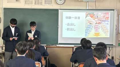 2日間という短な期間ですが、大変良い体験ができたようです。1年生の皆さんは、この発表会を参考に、やりたい職種についてぜひ調べてみてください^_^