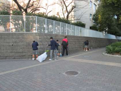 今朝は、バスケットボー部がきれいに掃除をしてくれました。