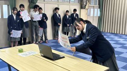 体育館が卒業式の仕様になっているため、多目的室にて、オンライン放送としました。