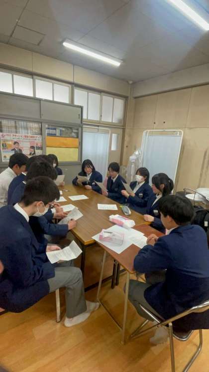 保健室で体育の打ち合わせ風ですが、学年集会のサプライズに向けて準備してくれていました。