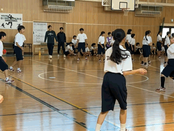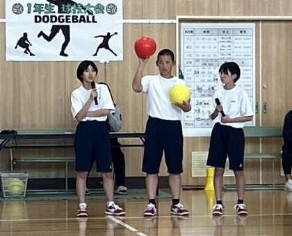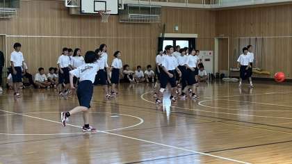 女子も頑張ってますよ。赤いボールは火の玉。女子しか触ってはいけないボールらしいです。男子が触ったらアウトということです。面白いルールですね。