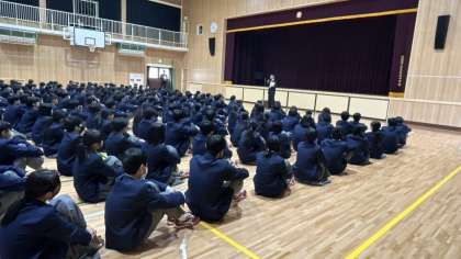 まず各学年の担当の先生方の発表を行いました。その後始業式を行いました。1学期のやってほしいこととして、様々なことにチャレンジし、周囲の皆さんと協力して取り組んでほしいとお話ししました。