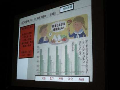 データにより、朝食を食べているかどうかはとても大きく、成績に関わっていることや、イライラを解消すること、先のことを考えることができるなど、一日の始まりで本当に大切なことを確認しました。