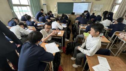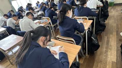 3年生の数学の授業に入っていました。まずはどれぐらいの学力があるか、小テストを行いました。1年生の問題かな?3年生の皆さんちゃんとできましたか?