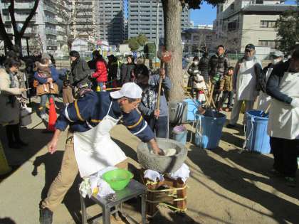 先週の北恩加島地域でのお餅つき。ポカポカ陽気でした。