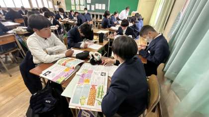 1年生の理科の授業です。生物の細胞について学んでいるようです。中学校の学習は、小学校よりもさらに詳しく学んでいきます。1日1日の復習を大切にしましょう^_^