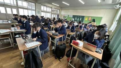 1日目の今日は、学習者用端末を使って理科の調査を受けています。学習者用端末を使っての調査は、今年度はじめての取り組みです。