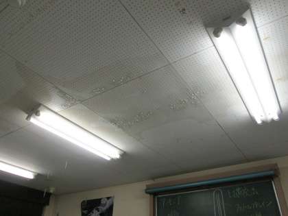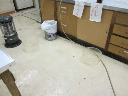 2階調理室の水道管が痛み、下の階に水漏れ。