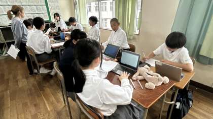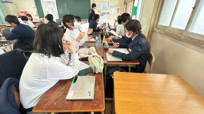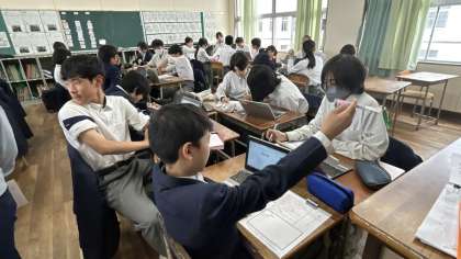 今回は、学習者用端末を使って災害に関する調べ学習を行っています。