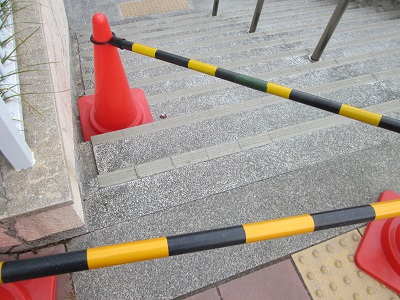 管理作業員さんの手により、正門内側の階段で、外れていたタイルが補修されました。