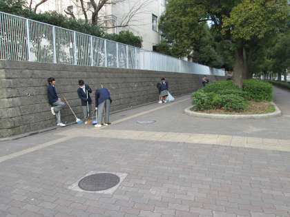 今朝は、バスケットボール部が清掃活動を手伝ってくれました。感謝!