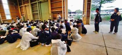 野外炊飯の説明を聞いている時は、既にずぶ濡れの人もおり、ほぼ全員靴の中まで水浸しです。