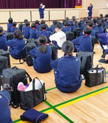 男子バスケットボール部がレクリエーションの荷物などを運んでくれたりお出迎えしてくれたり、吹奏楽が校門で出迎えてくれたり、他学年の先生が荷物だしをしてくださり最後まで沢山の方々に助けて頂き感謝です。