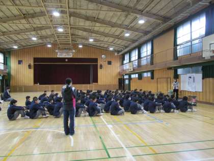 冷え冷えの体育館ですが、学年主任の先生から、人権にかかわる熱い思いが伝えられました。