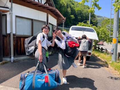 明日は10時40分に各家庭から合流して、吉野川に移動、ラフティング活動です。明日も大正北中学校ホームページをご覧ください。では。z.z.z....