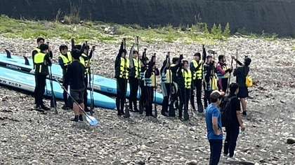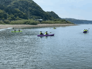 カヤックとSUP(サップ)、遠泳の3ローテーションで体験中。