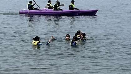 泳ぎ組は、浅瀬でちゃぷちゃぷしています。