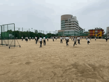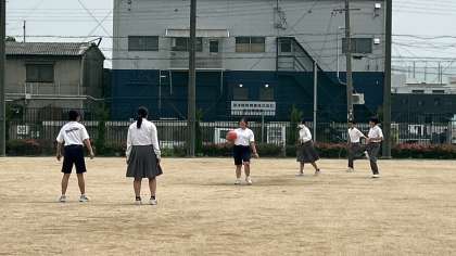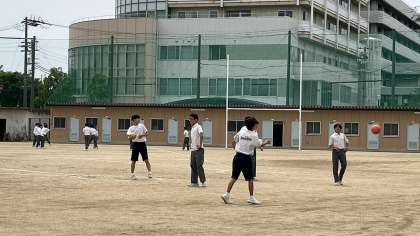 ボール当てをしている生徒が多いようです。女の子も、速いスピードでの投球が見られました。痛そう、、、。