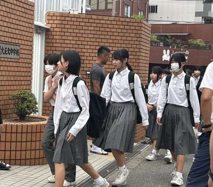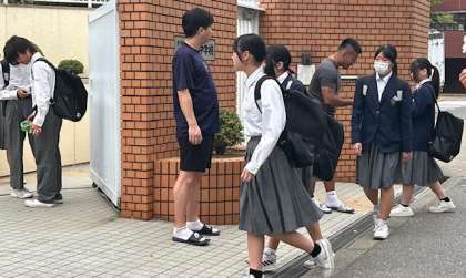 気温が高くなってきたので、登校して来る子どもたちの服装も、夏模様に移り変わり始めました。ブレザーとの混在となっています。