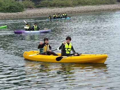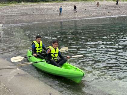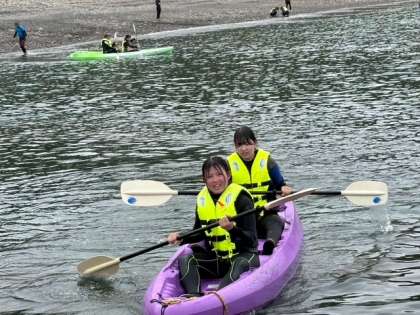終わりの時間が近づくと、海岸から赤旗が振られていました。生徒の皆さんは、漕ぐのでいっぱいなので、気づかなかったかな?