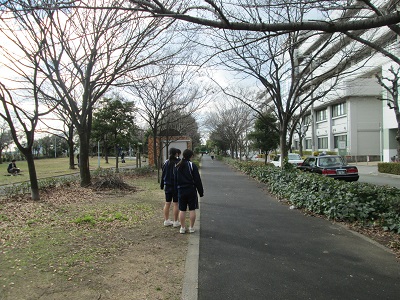 2年の体育の授業。明日のマラソン大会に向けて、北村南公園を走っています。