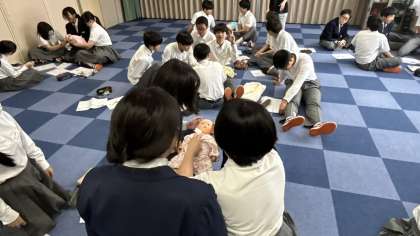 首がまだしっかりしていない乳児なので、恐る恐る抱っこをしていました。服を脱がすのもおむつを外すのも、初めてだったかな?