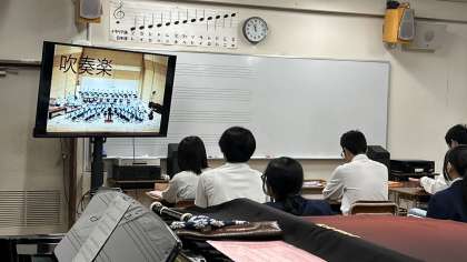 前回オーケストラについての学習を行い、今日は吹奏楽について学んでいます。