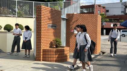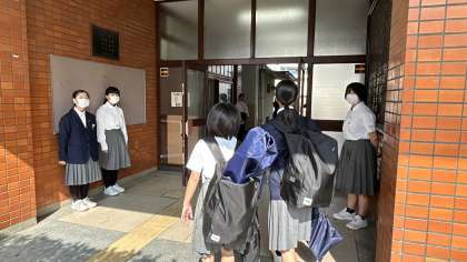 玄関では、生徒会の皆さんが元気に挨拶をしてくれています。今日3年生は、第1回実力テストです。がんばってね^_^